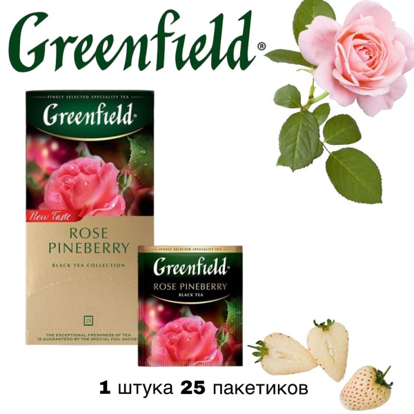 В оригинальной композиции ГРИНФИЛД РОУЗ ПАЙНБЕРРИ черный чай, выращенный на лучших плантациях Индии, дополнен легкой кислинкой гибискуса и яркой свежестью белой клубники*. Пленительный аромат турецкой розы наполняет букет нежной душистой сладостью. Greenfield Rose Pineberry.